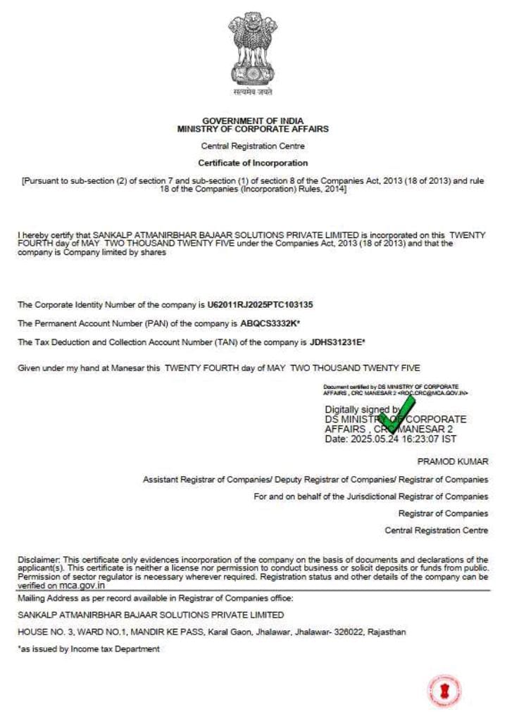SANKALP: TO PROVIDE SELF-RELIANT APPLICATION FOR ALL MOBILE PHONES IN INDIA. TO PROVIDE BEST SERVICES TO EVERYONE, TO PROVIDE THEM ECONOMIC FREEDOM AND TO MAKE THEM SELF-RELIANT